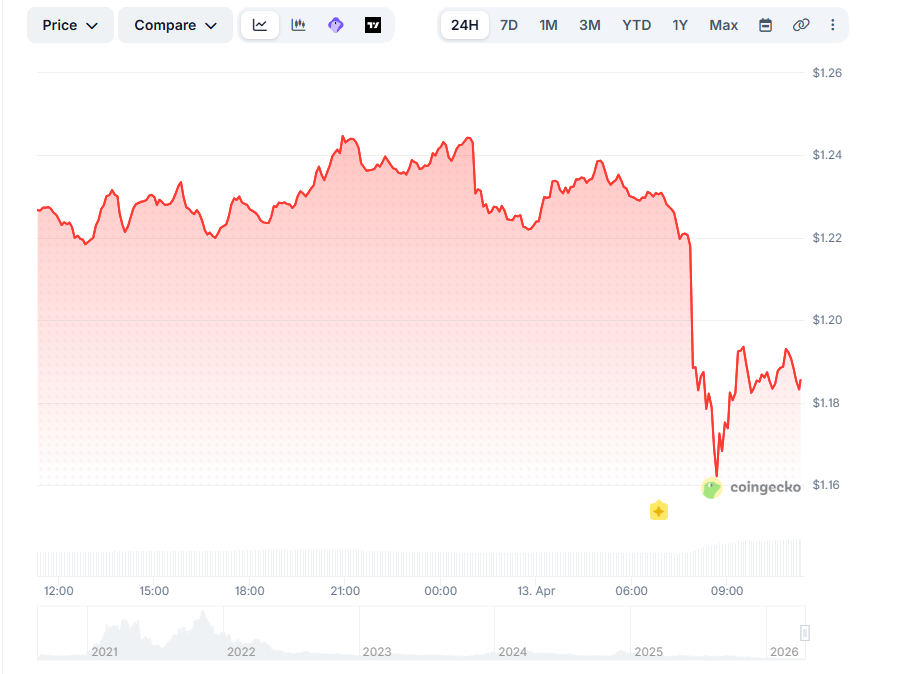 Price kriptovalyuty Polkadot reacted to the incident with a moderate decline of 3,4% to $1,19.