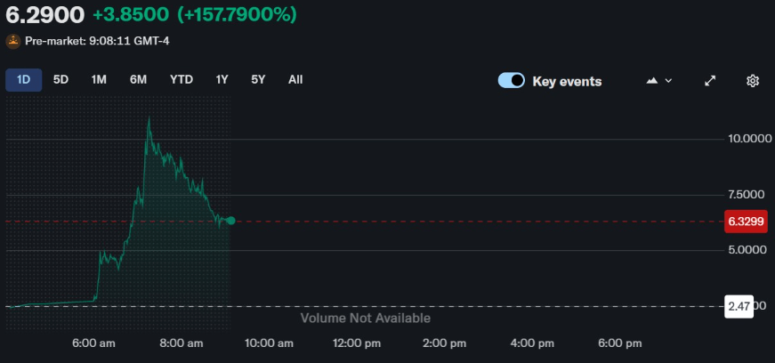 Following the announcement of the creation of a reserve in Solana, the mining company’s shares soared to $11 in premarket trading, up 350% from Wednesday’s close of $2, according to Yahoo Finance. At press time, the stock was down to $6,29.