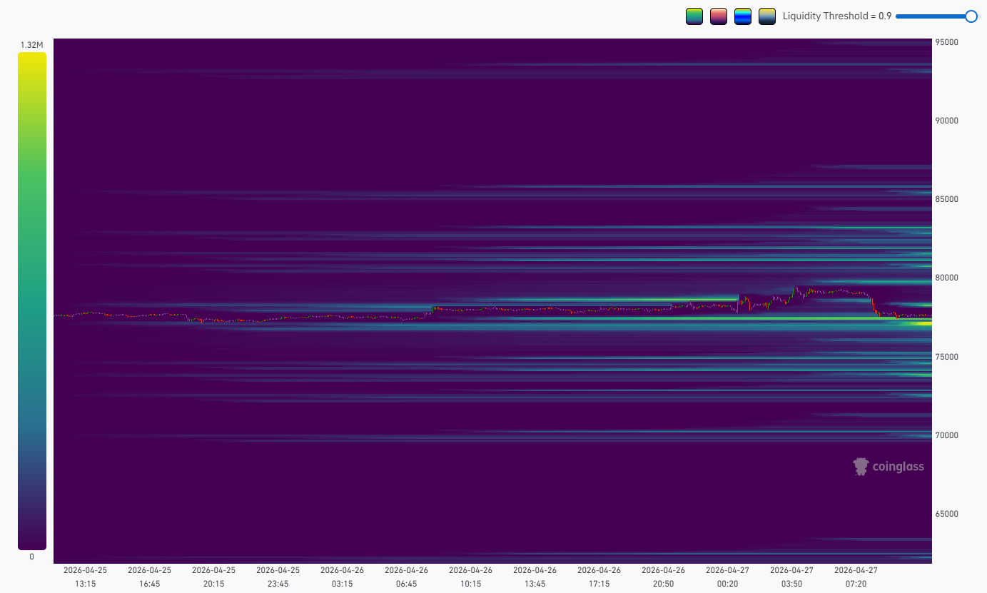 Data CoinGlass shows high liquidity for sale, concentrated between the $78,000 and $80,000 levels in two separate clusters.