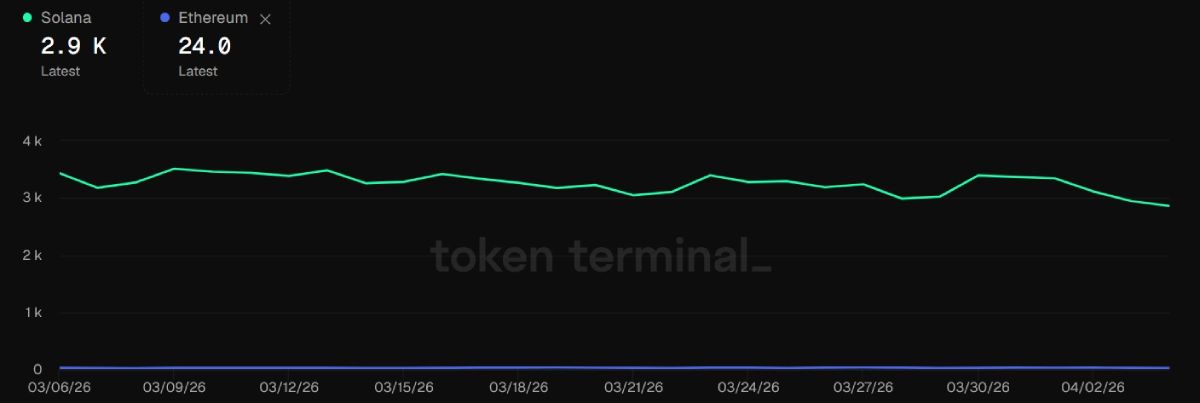 Число транзакций, совершённых в блокчейнах Solana и эфириума в секунду