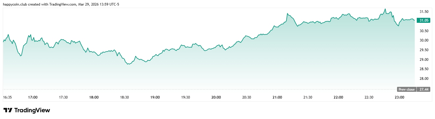 L’indice de volatilité CBOE a clôturé à 31,05 le 27 mars, en hausse de 13,16 % en une seule séance, propulsant ainsi l’indicateur de la peur de Wall Street à son plus haut niveau depuis fin 2025. Les prix de l’or se sont maintenus aux alentours de 4 491 dollars l’once, tandis que l’argent s’est redressé à 69,82 dollars, soutenu par les tensions géopolitiques liées au conflit au Moyen-Orient.