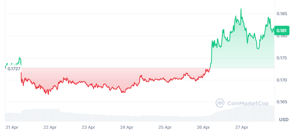 Au cours de la semaine écoulée, le PI a progressé de 4,48 % pour atteindre 0,1809 $, portant la capitalisation boursière du jeton à plus de 1,89 million de dollars. Selon CoinMarketCap.