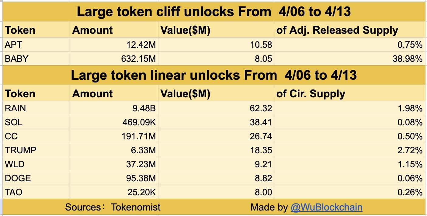 - С 6 по 13 апреля различные криптопроекты проведут разблокировки своих токенов.