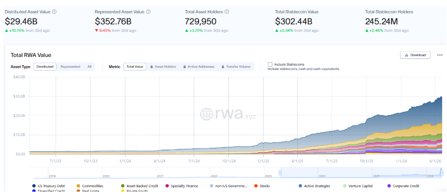 In 2026, the value of tokenized real-world assets (RWAs) on public blockchains grew to exceed $29 billion, an increase of more than 10% over the past 30 days, according to rwa.xyz.