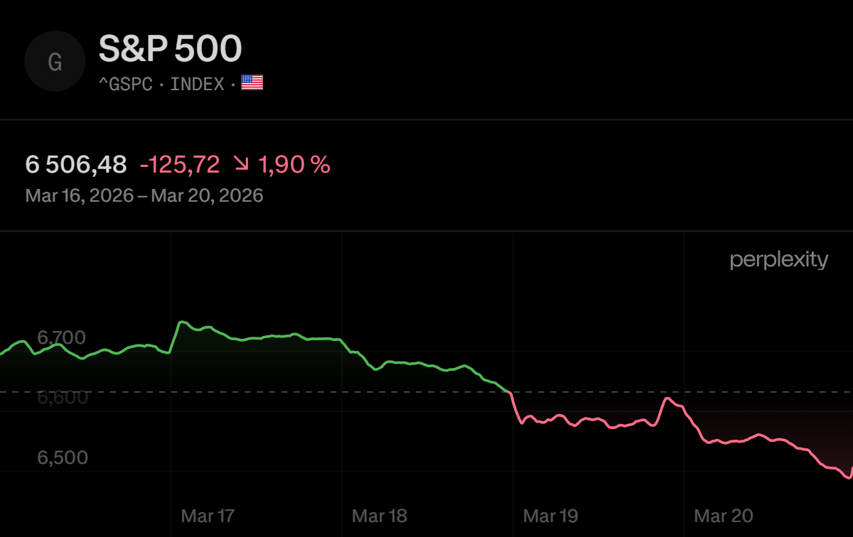 Индекс S&P 500, включающий 500 крупнейших публично торгуемых компаний США, остановился на отметке 6506,48, потеряв 100,01 пункта, что стало четвёртым подряд недельным снижением и самым низким уровнем с сентября 2025 года. Индекс NYSE Composite завершил торги на отметке 21,616, снизившись на 324,30 пункта, что отражает общую слабость во всех секторах.