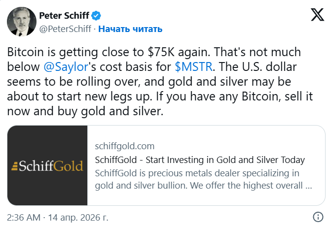 Schiff’s statement comes amid a recovery in the cryptocurrency market. Over the past 24 hours Bitcoin rose more than 5,30% to $74,594, up almost 8% over the week, According to Coin Market Cap.