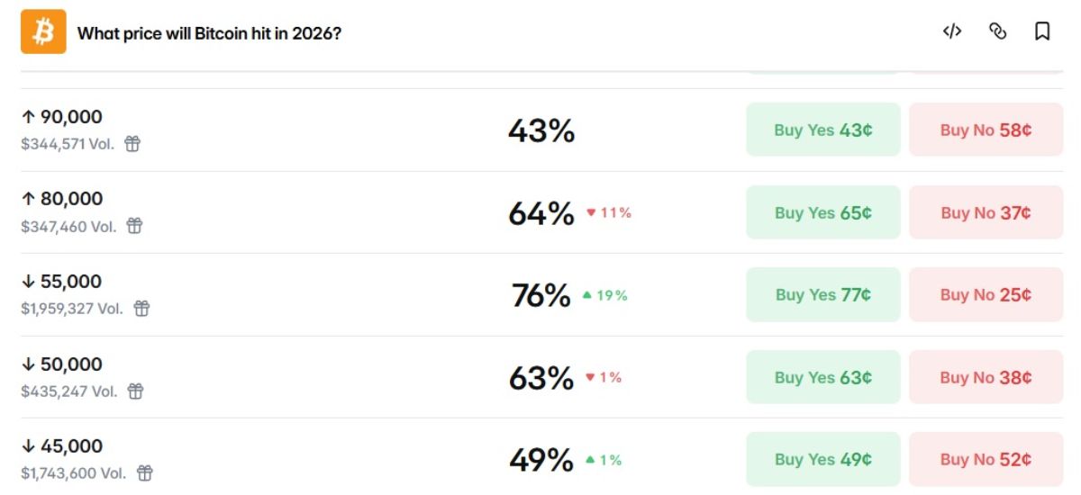 - Ряд пользователей Polymarket также ставит на снижение цены BTC.