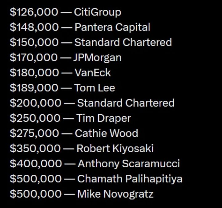 • Руководитель инвестиционной фирмы Galaxy Investment Partners Майк Новограц и венчурный капиталист Чамат Палихапития оказались наибольшими оптимистами, потому что предрекли подорожание цифрового актива до $500,000.