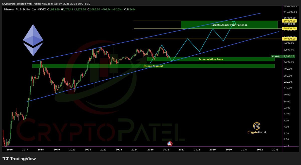 - Аналитик Crypto Patel сделал предсказание на повышение курса Ethereum к середине 2030-х годов до $50,000.