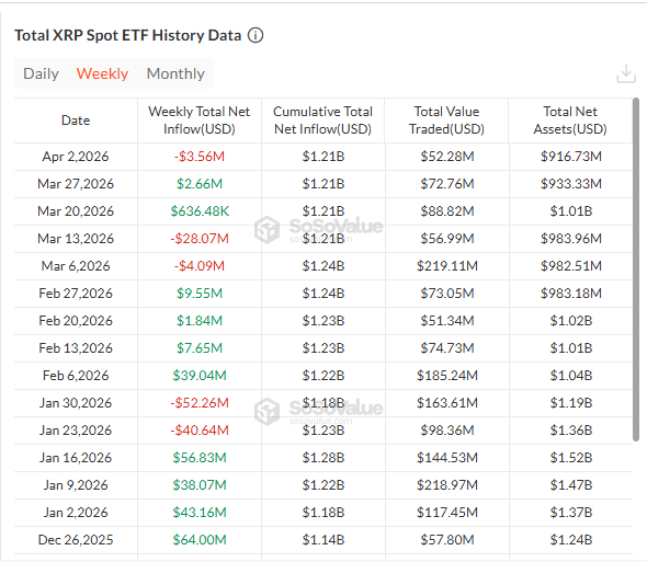 Данные по спотовым ETF на XRP. Источник SoSoValue