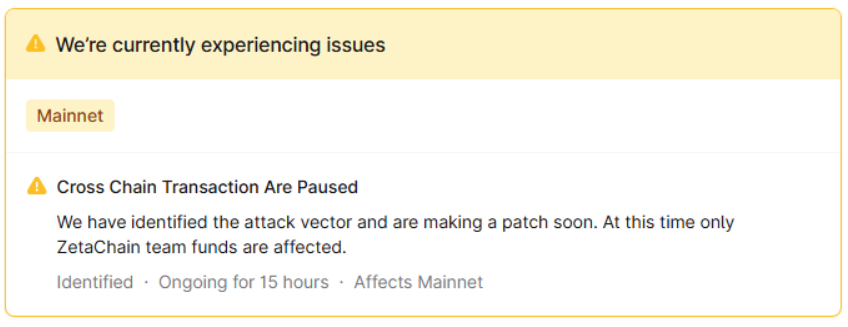 The ZetaChain network suffered another smart contract attack, forcing it to suspend all transactions. The team stated that no user wallets were affected and that the team managed to mitigate losses.